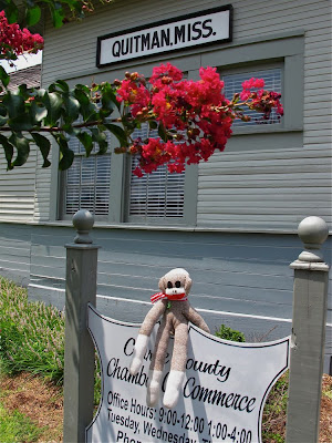 SockMunky was looking out at Caesar's Head in South Carolina (see here and below) when he realized that the rock didn't look like Caesar! No, it looked like the SockMunky himself! Yikes! His image had been appropriated without his consent, and he was annoyed. Yup, annoyed. He wants royalties from postcard sales. No good telling him that the rock is older than he is. He's stubborn, that monkey.